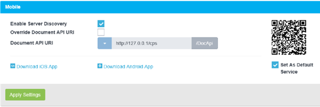 The only step needed to complete the Mobile workflow configuration is to set the IP address that the Mobile Apps use to communicate with your PrinterOn installation. Once this address is configured, Mobile Apps will be able to both search for printers and independently submit print jobs.